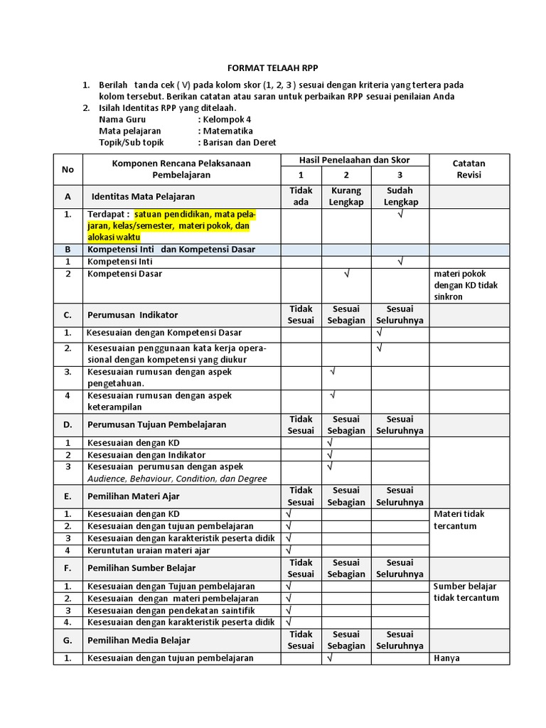 Lk 1 Amp 2 Telaah Rpp Kelompok 4